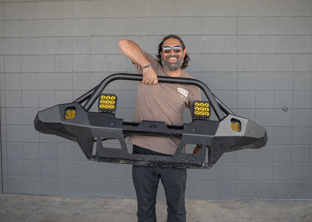 Overview: Introducing our TRUE hybrid prerunner style front bumper for the (2024+) 4th gen Toyota Tacoma. Our version of a Hybrid Bumper incorporates Steel AND Aluminum, not just one or the other. The Hi-Lite gets its name from its aggressive, high-clearance design and its ultra lightweight overall construction. This bumper features a full 40lb aluminum shell and a 42lb steel winch cradle for a total weight of 82lbs. (40lbs is actually removed from the OEM bumper, so you're only adding around 45lbs to the front of your truck with this bumper). We've specially designed this bumper to give you strength where you need it most while saving weight and eliminating rust everywhere else.