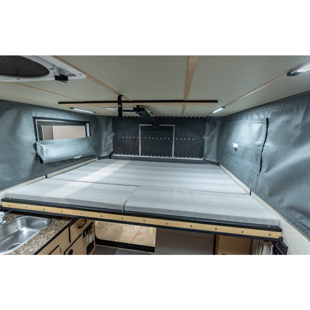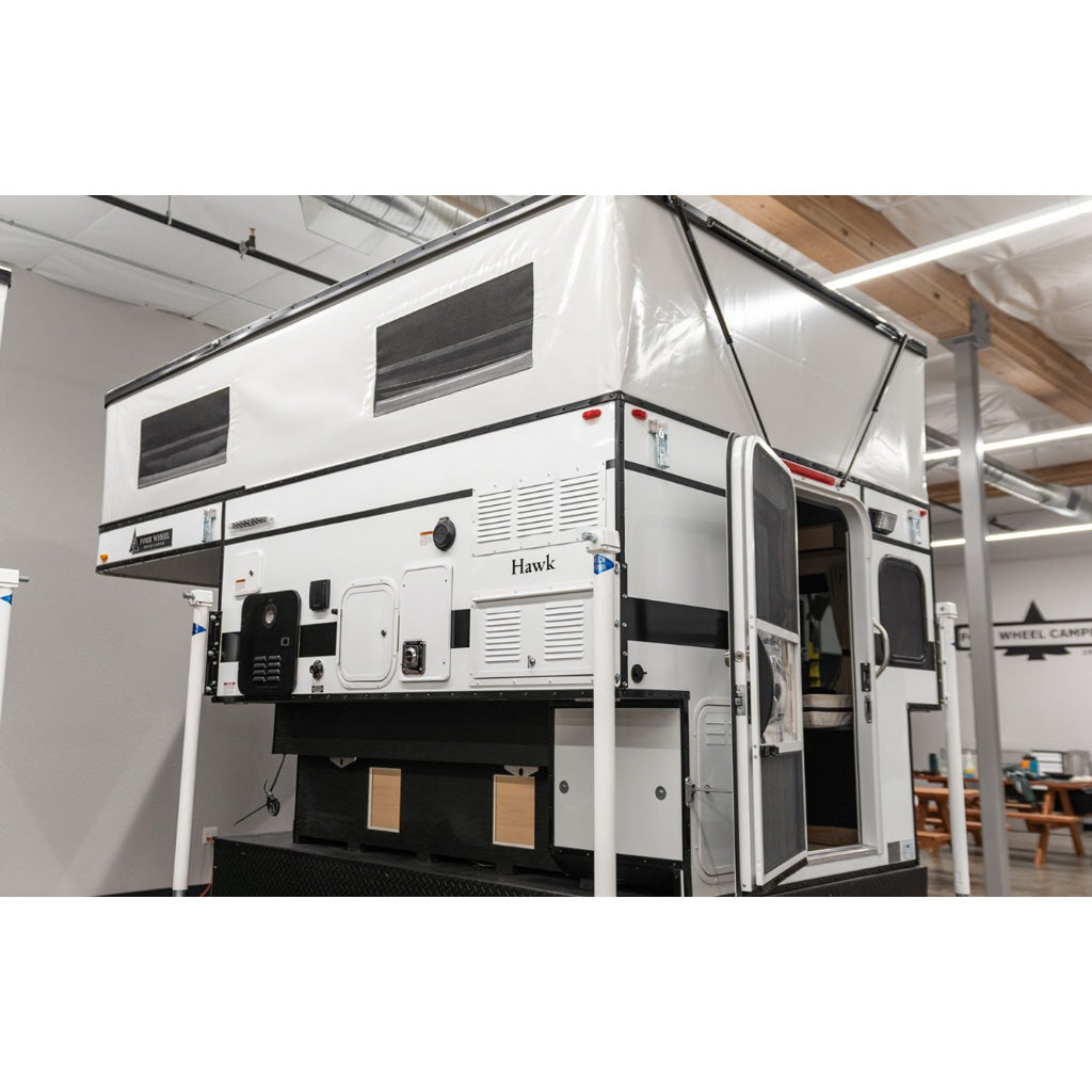 Overview: Check out this stock unit HAWK slide-in pop up Camper with Side Dinette floor plan by Four Wheel Campers that will be ready for installation at any three of our locations. The MODEL model camper is made to fit most full-size trucks with a 6'-6'7" bed length.