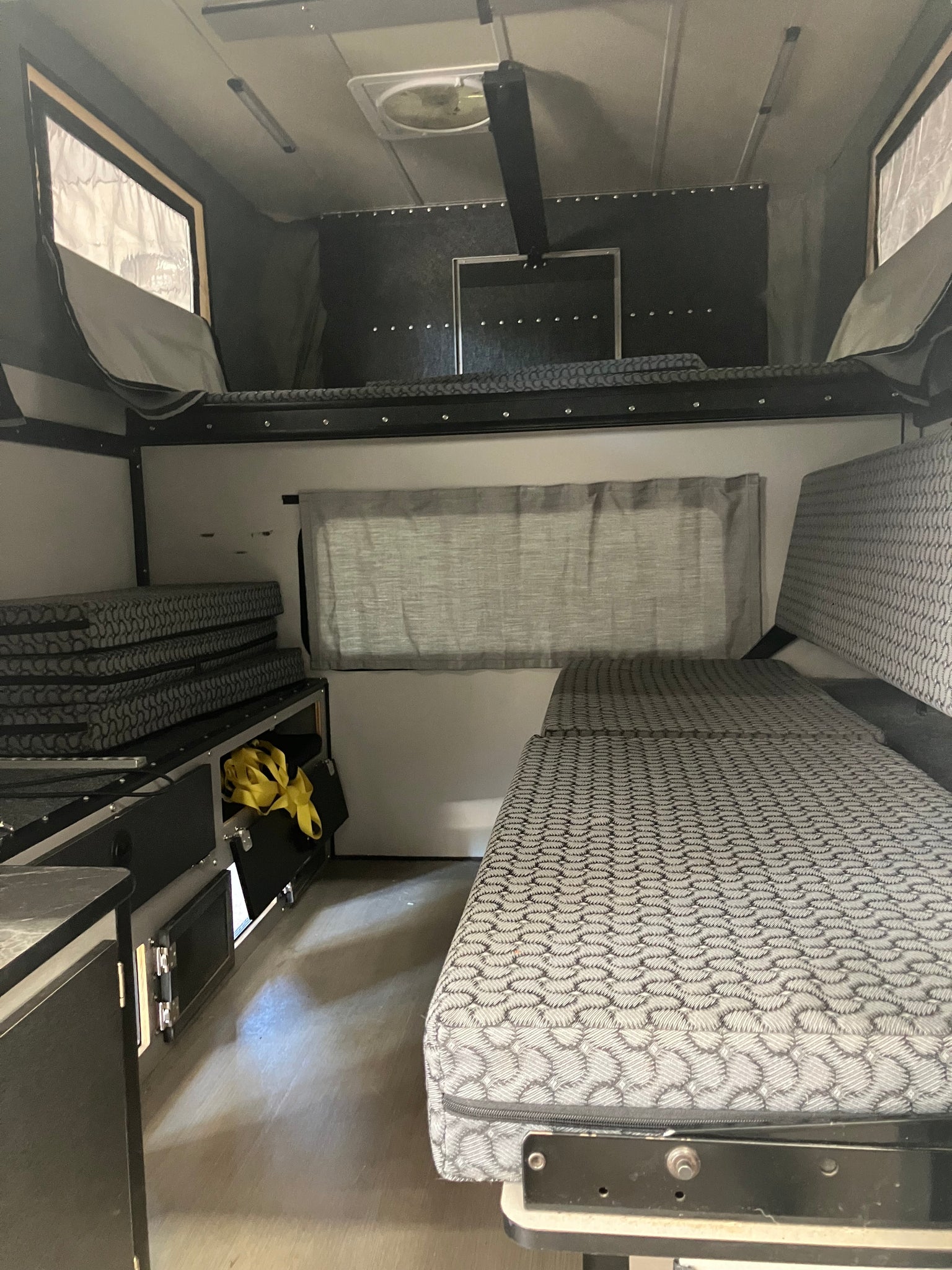 The FLEET model camper is made to fit most mid-size trucks with a 6'-6'7" bed length.
