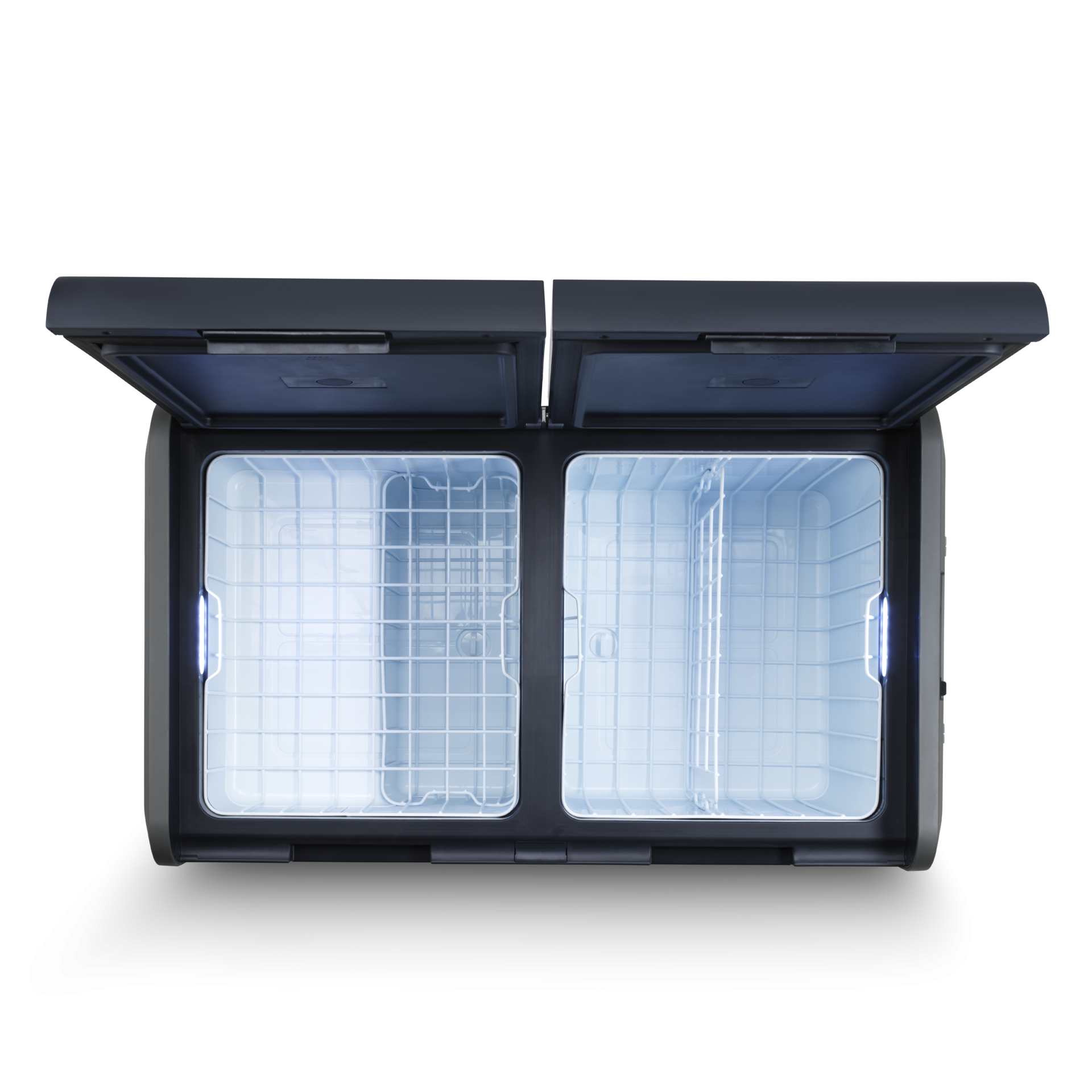 Overview: This is the Big One. Dual zone cooling and a capacity that lets you get nomadic for a while – or go all out with campsite dinners. Vacuum Insulated Panels deliver outstanding insulation, and two cooling compartments keep everything at the right temp – ice cream won’t melt, cheese won’t freeze. You can control it with our smartphone app, a carbon steel frame protects, and – cheers – a bottle opener’s built in.