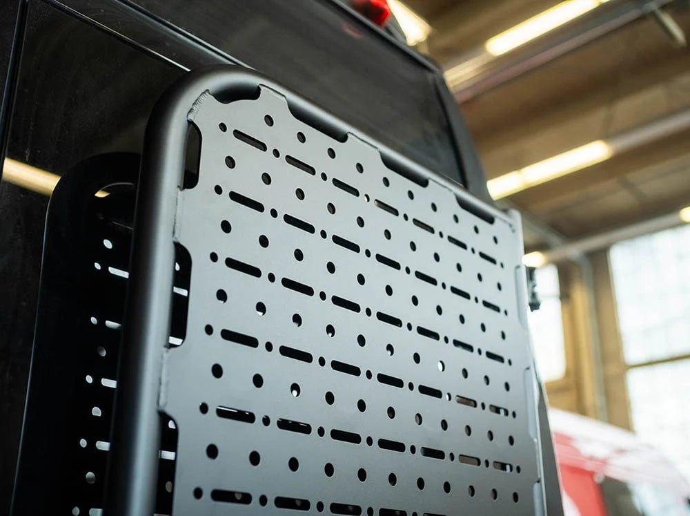 We’ve designed the Promaster Rear Door Platform for ease of use and long-lasting durability. Constructed with an aluminum round tube frame, mounting plate, and stainless steel structural brackets, this gear carrier is the most robust and versatile Promaster-specific option on the market. The sizable mounting surface sits flush with the frame and has a combination of patterned ½” and ⅜” mounting holes and slots for endless mounting capabilities.