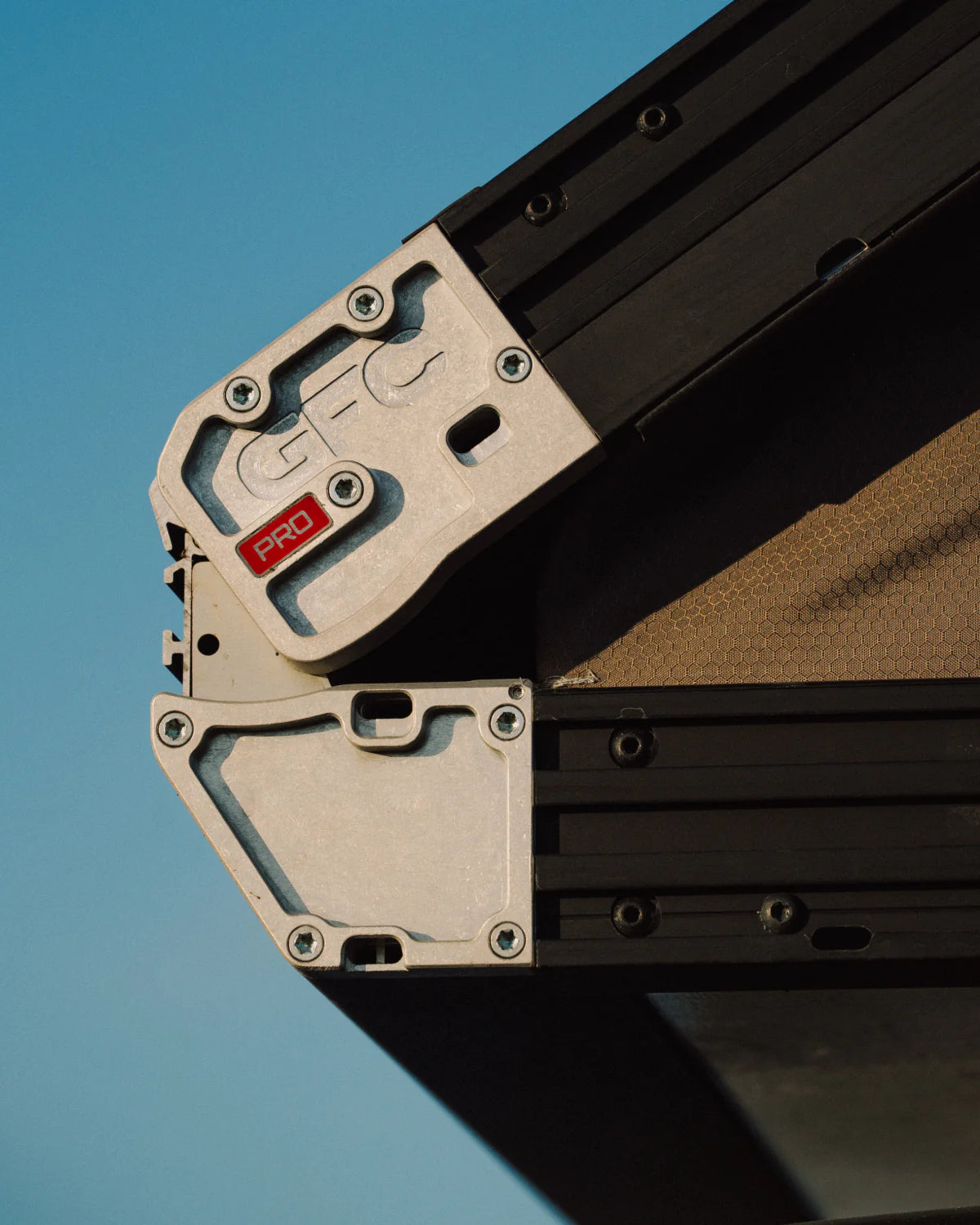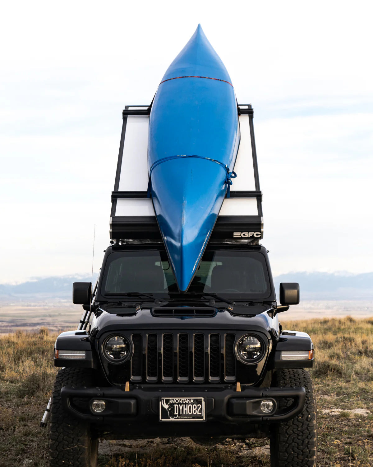The roof is designed to carry your boards, solar panels, bikes, or boats, without the need to remove them each time it’s pitched. Add a set of Beef Bars for easy mounting.