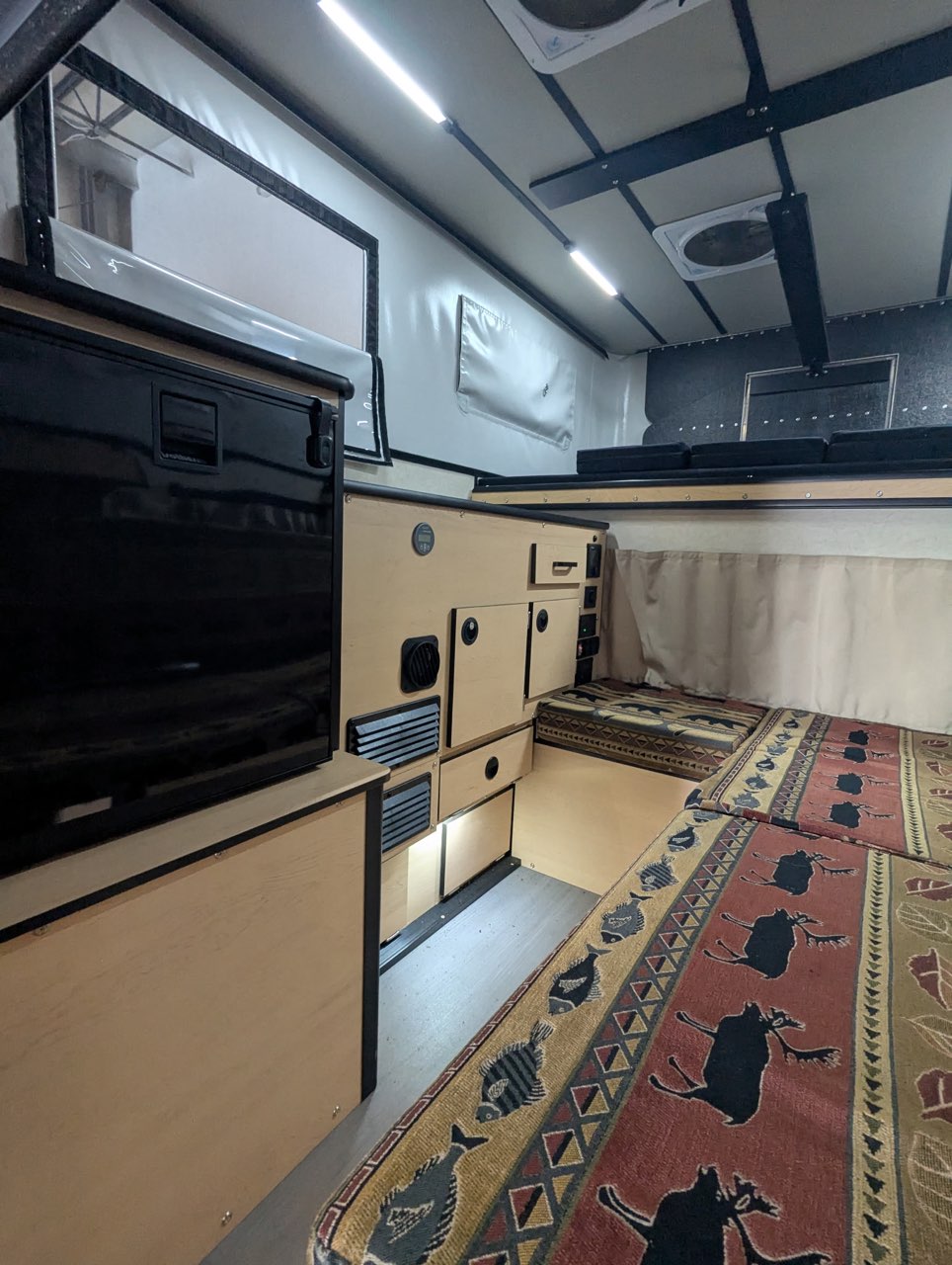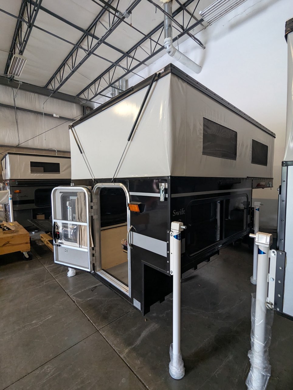 The Swift model campers are made to fit mid-size trucks with a 5' short bed. This Swift model is equipped with the following interior and exterior options (including all standard/base features).
