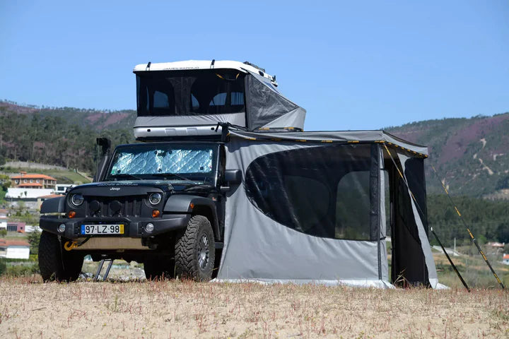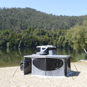 Composed by 5 independent panels, 4 windows and 2 doors, these walls are designed to provide a weather resistant 10m² living space for you and your camping buddies.