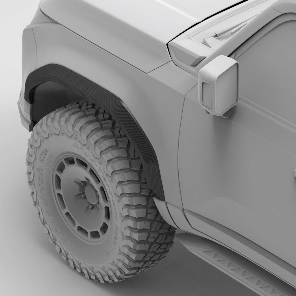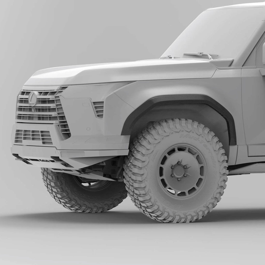 Overview: 2024-Current Lexus GX550 Fender Flare Kit. Fits all trim levels. Adds 1 inch of width per corner on the Overtrail trim, and 1.5 inches of width per corner on the Premium and Luxury trims. (Built to order. Estimated lead time 8-14 weeks.)