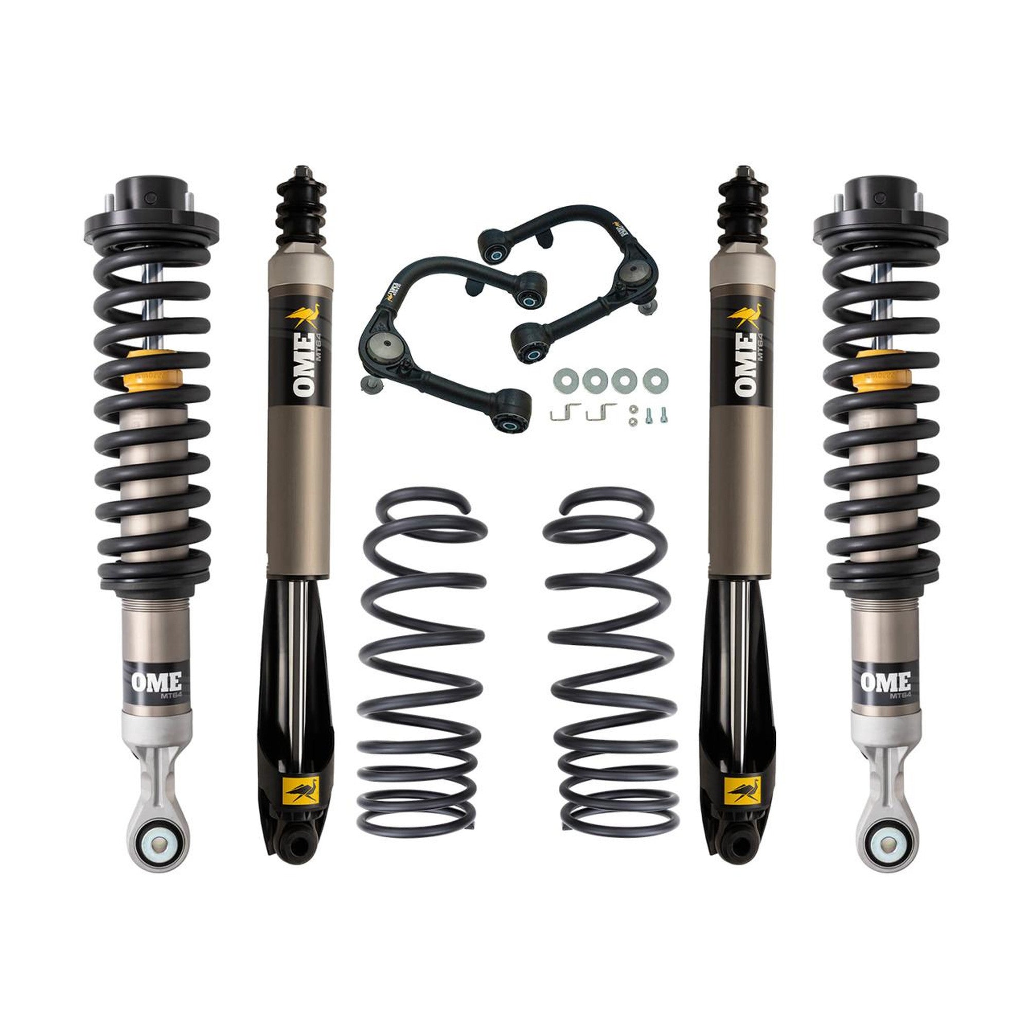 Old Man Emu has an offering of 3 different shock absorbers to ensure that you can find an integrated suspension kit to suit your every demand, vehicle outfit and road condition. This suspension lift kit comes with Old Man Emu MT64 shocks. The MT64 is engineered to handle every challenge, from demanding overlanding trips to the daily commute and every custom build in between, the MT64's huge 2.8 aluminum body and vehicle-specific damping ensure optimal performance across any terrain.