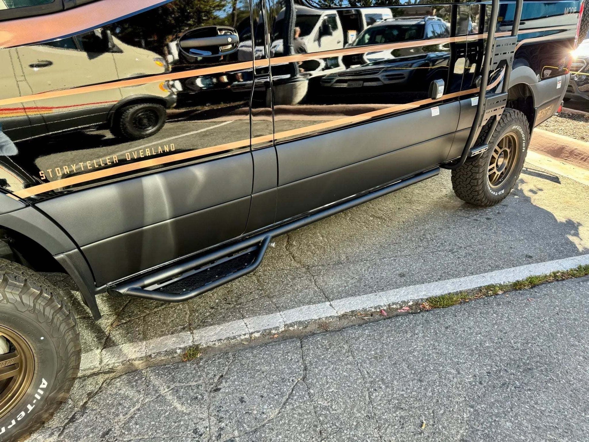 Overview: Owl's Side Steps are a top choice for van owners, with mandrel-bent aluminum and laser-cut steps that deliver unbeatable quality, trusted by brands like Storyteller and Airstream. The "Trail" version offers the same sleek design as the Explorer in a lighter, more cost-effective form, featuring a single driver-side step with a side pipe running the van’s length.