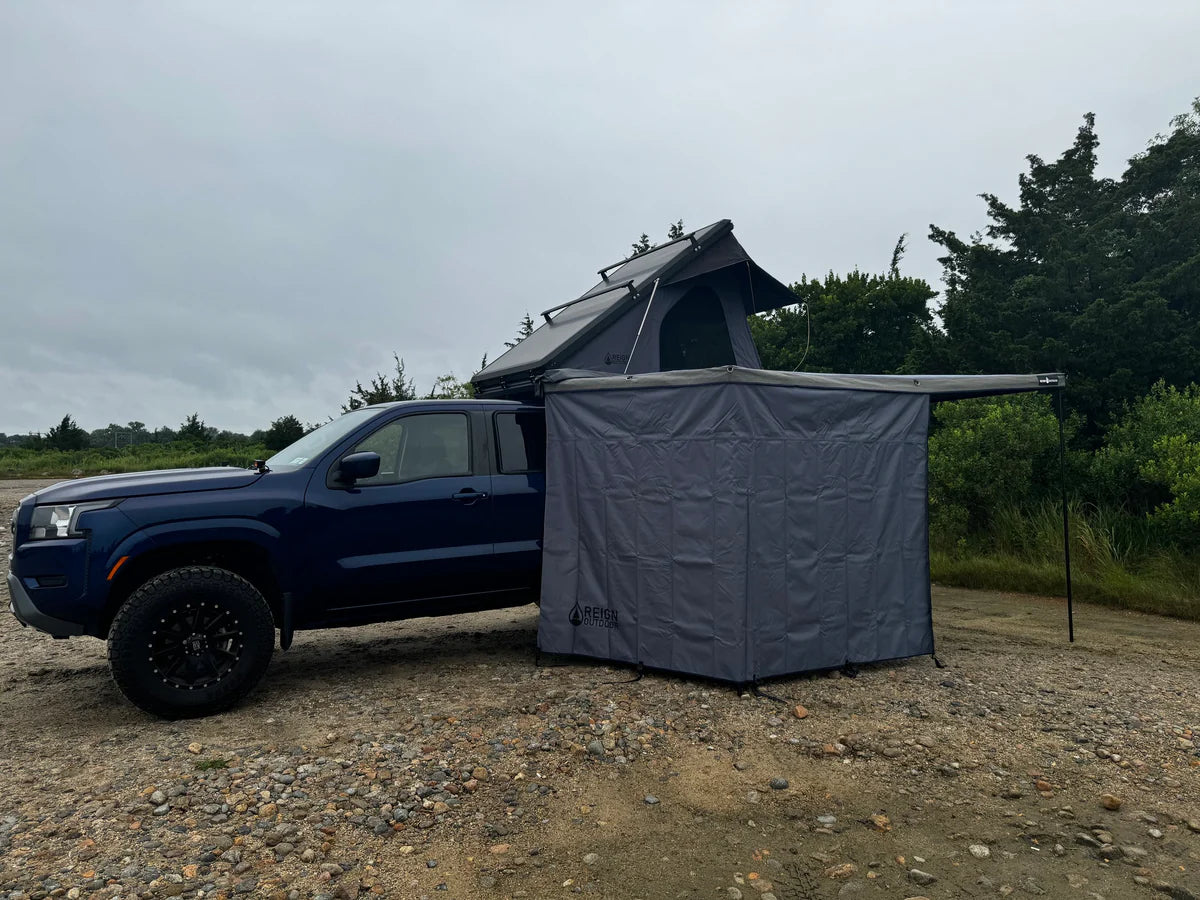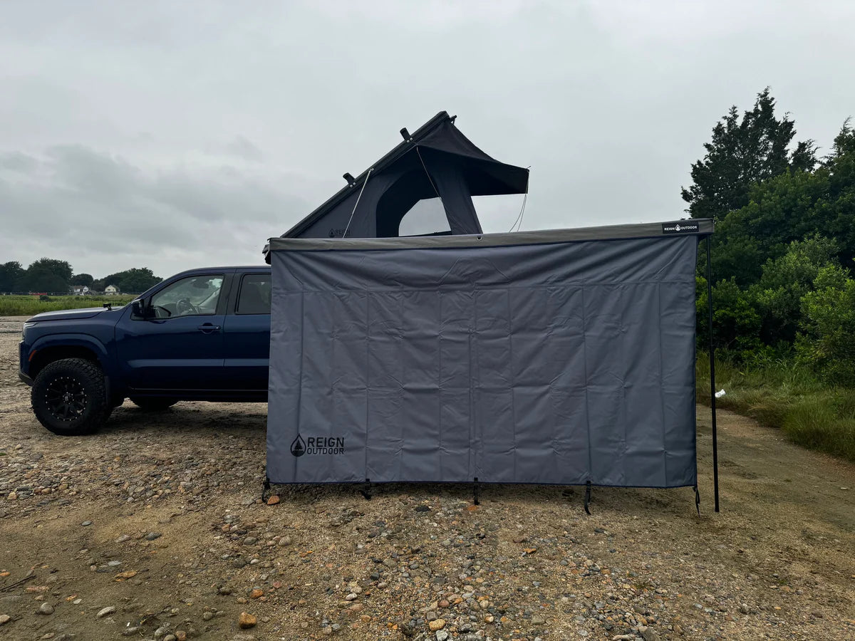 Overview: Introducing the Reign Outdoor Windbreaker! It may not be a rad fluorescent 80’s jacket, but it is a durable wind screen designed to pair perfectly with your Reign Outdoor 270 FR+ Awning.