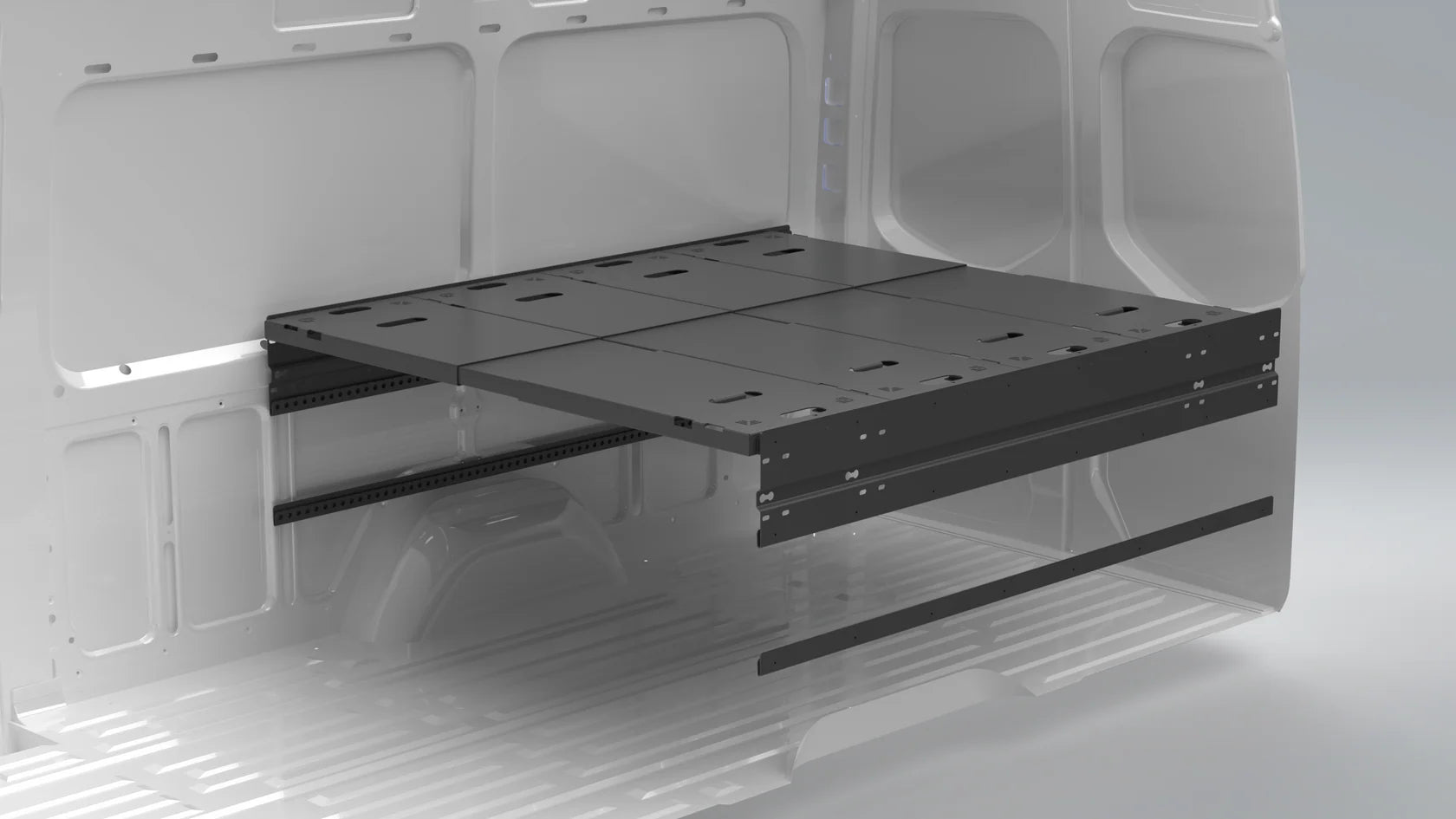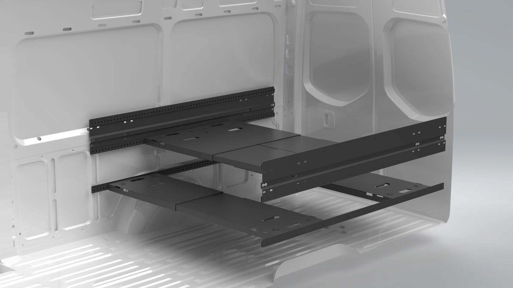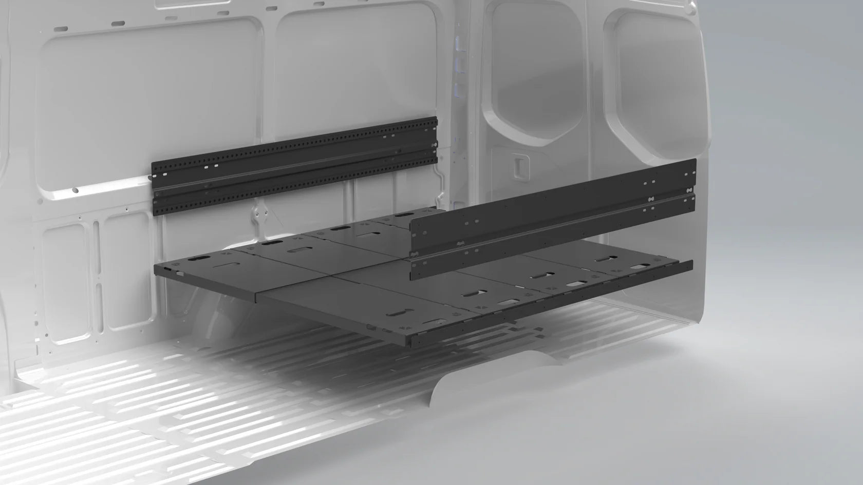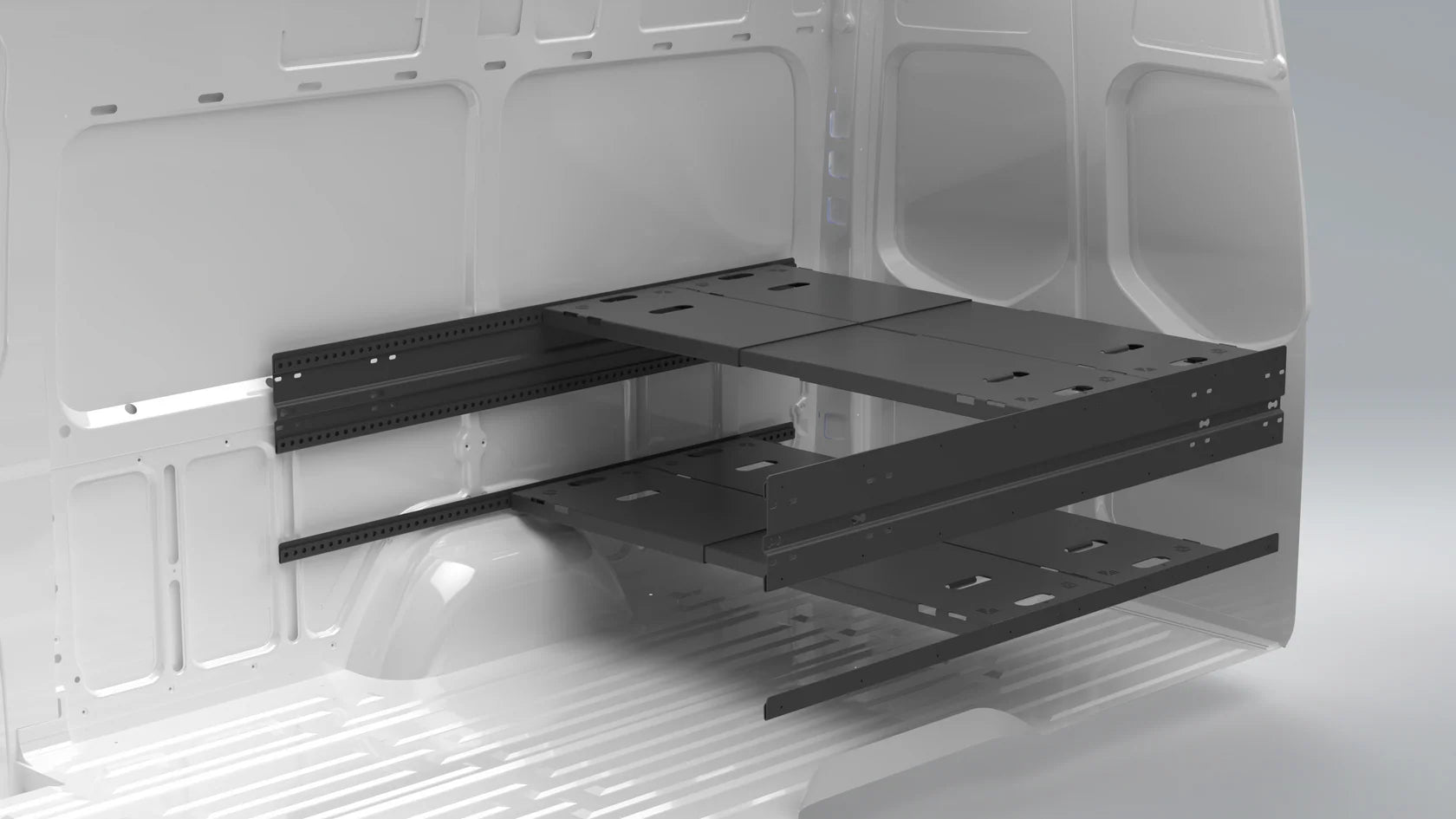 While there are countless configurations, we typically recommend 4 panels and 3 sets of J channel to create 3 mounting heights. This allows for the most configurations, including platform bed, bunks, table, couch, and desk configurations. Even in shorter vans, such as a Sprinter 144, the 4th panel will be used for bunks and as a storage shelf.