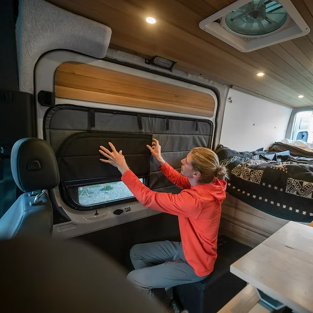Overview: Whether you want to keep your van cool during the summer or seal in heat in the winter, VanEssential window covers provide superior thermal insulation, keeping you comfortable on the road. We use high-strength magnets, double-walled insulation, and premium fabrics to craft precision-fit window covers that look great in your rig and block outside light.