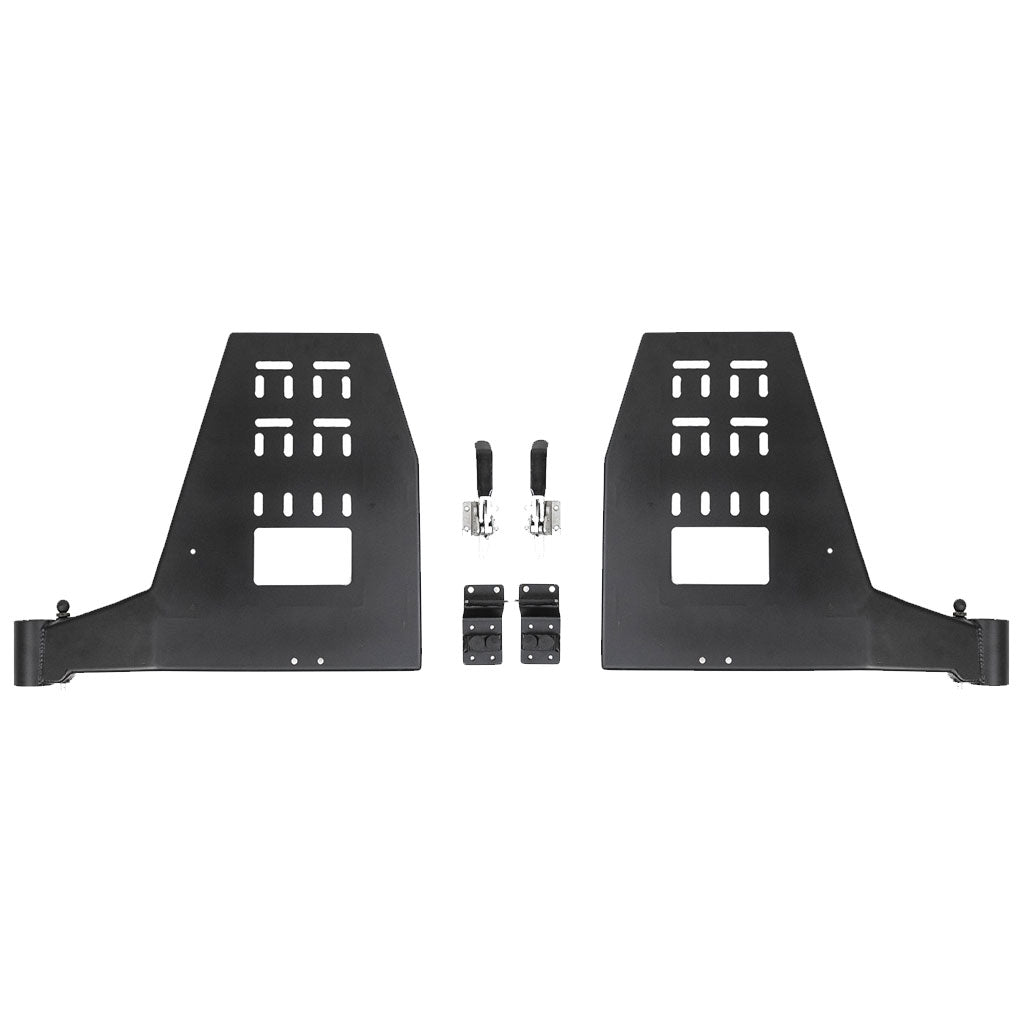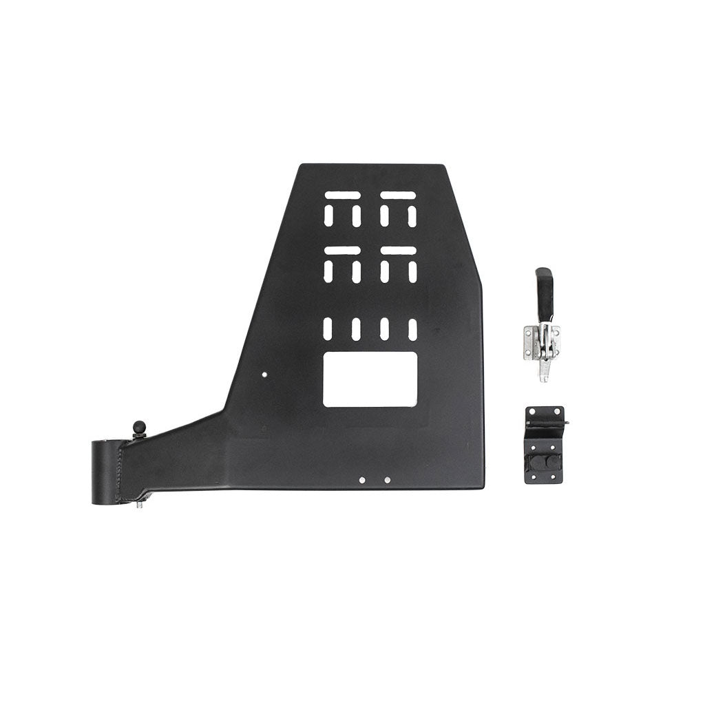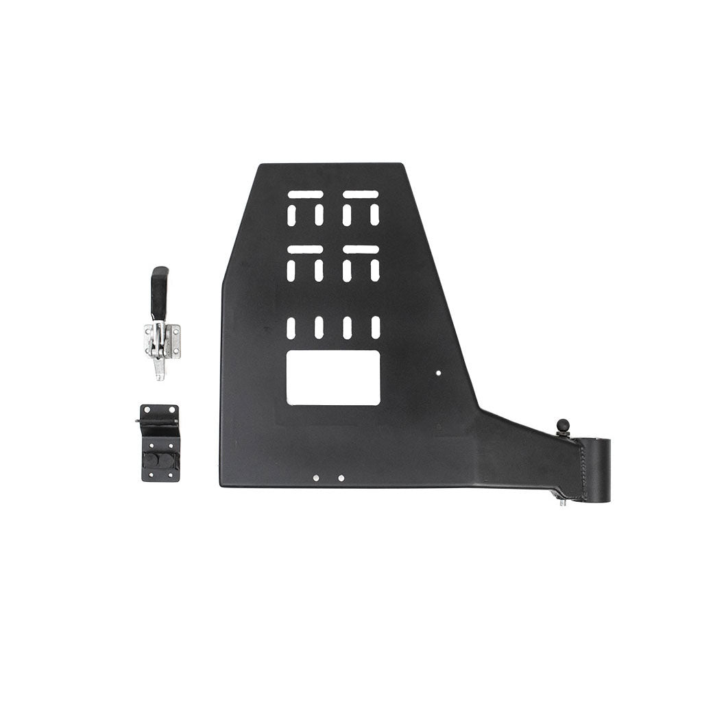 - Allows for mounting almost anything (spare tire, jerry cans, tread boards, Rotopax, Hi-lift Jack, fold down table, etc...)