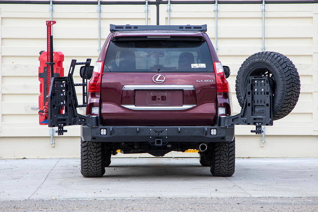 Overview: When you need maximum protection, recovery options, and a modular swing-out system; our Strike Series rear bumper is the perfect choice. This made in the USA bumper features integrated cube light mounts, 3/4" recovery tabs, and built-in provisions for dual swing-outs that can be added or removed at any time! (Sold separately.) The bumper is available in a two-stage satin textured black powdercoat over durable zinc primer finish.