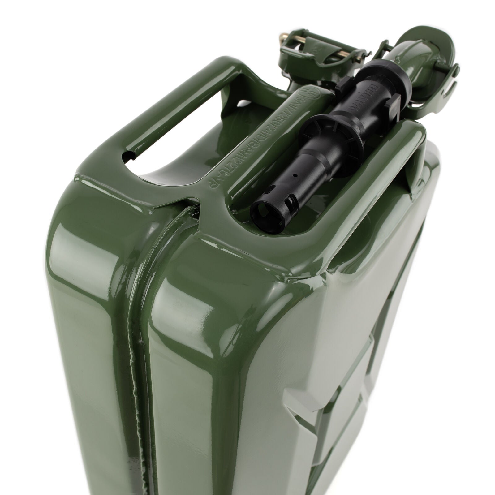 Overview: These leak-proof steel fuel cans come directly from the same manufacturer that has supplied many NATO countries for over 75 years and are the highest quality jerry cans on the market today. Rigorously tested, they boast a number of features: 0.9 mm steel walls, an interior rust-proof Rezol lining*, an internal breather pipe for splash-proof pouring, a three-handle configuration for easy carrying, a Leak-proof bayonet closure, and a locking pin for the cap.