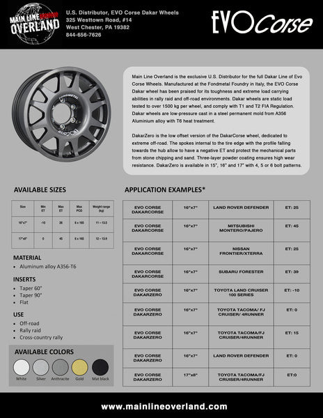 Check out this vehicle fitment quick reference for all of the EVO Corse Dakar Wheels available for U.S. spec vehicles.