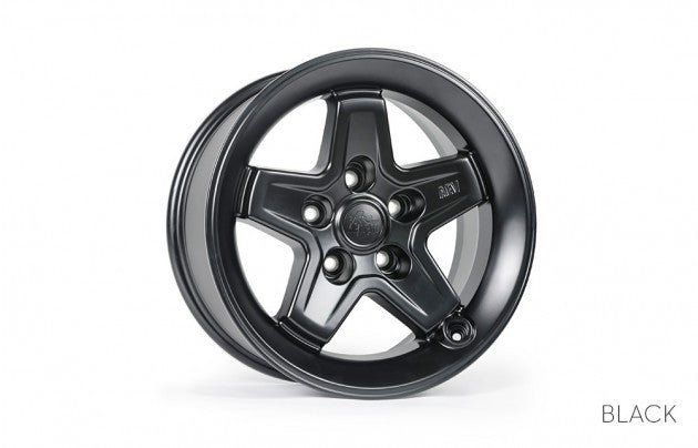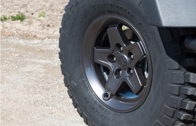 AEV's classic wheel design, the Pintler combines timeless styling with the innovative features and off-road strength that you've come to expect from AEV. We pioneered the idea of recessed valve stems, which come in pretty handy when you're dragging your wheels across rocks or other obstacles. Most importantly, these wheels were designed for Jeeps, not as a one-size-fits-all aftermarket wheel. They have a JK specific offset, which provides the optimal balance of tire clearance (up to 37" tires), scrub radius and handling. Available in Onyx Black, Silver and a paintable Flat Black finish.