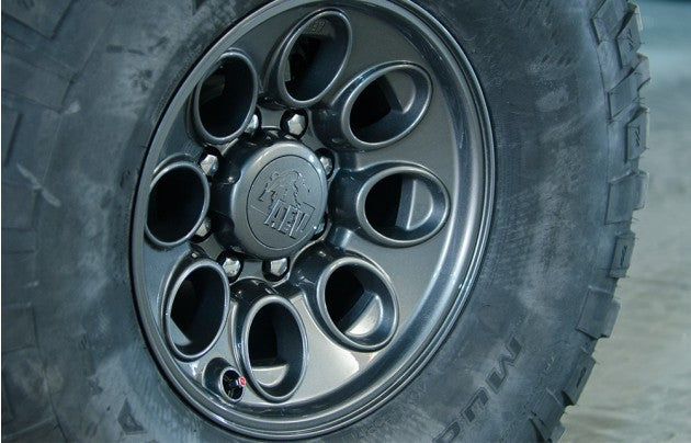 Please note: As a general safety precaution, AEV does not recommend powder coating aluminum wheels. The heat range and duration of the powder coating process may overlap the heat treating and aging of cast or forged aluminum wheels. For this reason, powder coated wheels will not be covered under AEV’s lifetime structural warranty. All repairs and/or color changes should utilize automotive type liquid paint.