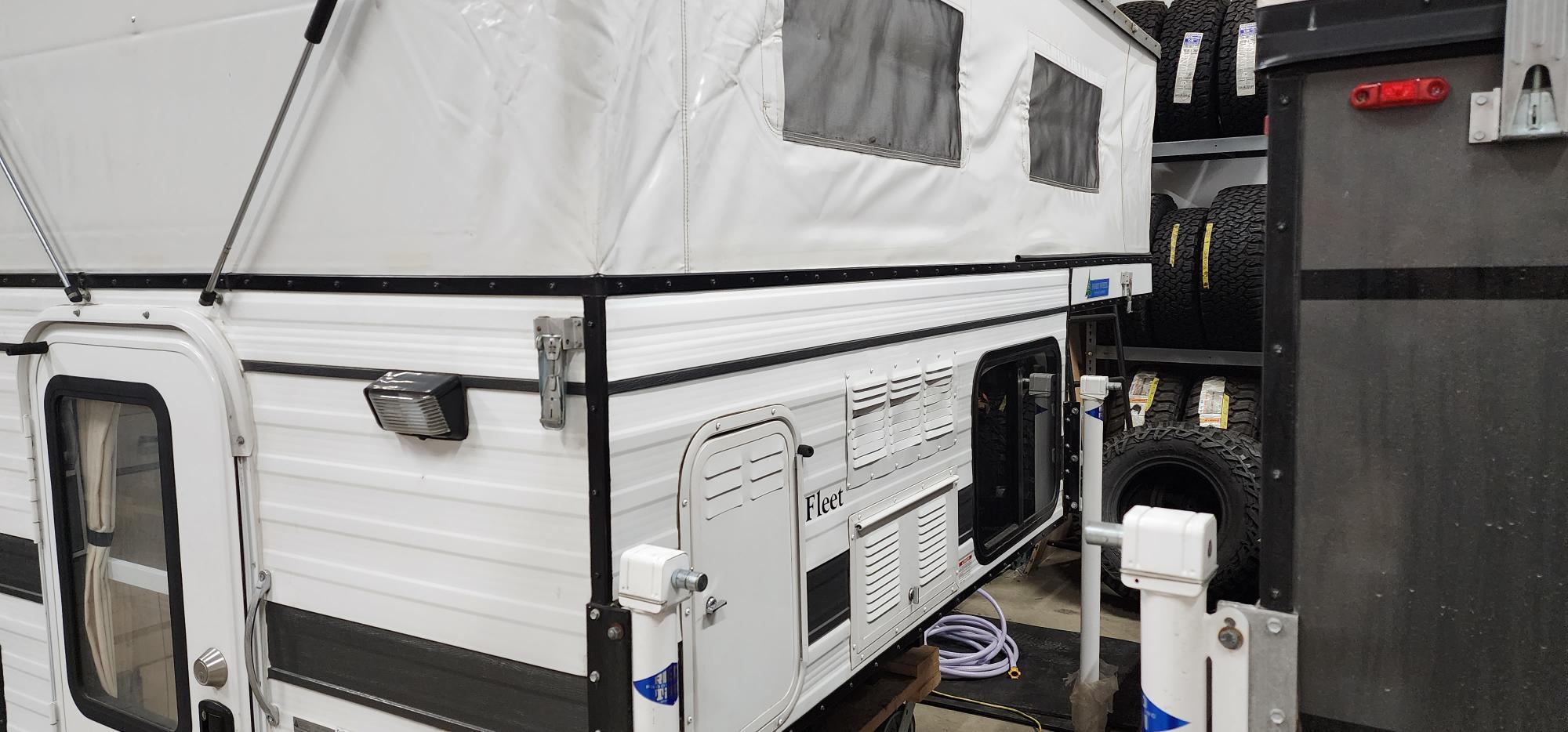 Check out this lightly used 2020 Fleet Front Dinette Four Wheel Camper that is for sale on consignment at our Bow, NH Shop.