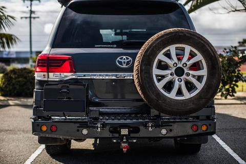 Dobinsons Spring & Suspension USA are introducing these new Aussie-style rear bumpers to the US market for the Toyota Land Cruiser lineup. All bumpers offer the same features, and are sold as complete kits. The tire carrier and jerry can holder must stay on the side pictured, they’re not interchangeable. If you don't want to install them you don't have to, as each spindle comes with a cover, but all the parts will still be included. Product Features: • Modern LED crystal park, indicator and reverse lights. All only work on 12V • Does not include the jerry can • Jerry can holder is on the left, and tire carrier is on the right for all models • User friendly latch mechanics lock in stainless steel • Adjustable offset tire carrier head, suitable up to a 35″ tire • Double-reinforced spindle, welded to the top, inside, and lower corner of the bumper for maximum strength • 4 Hi-lift jacking points, making lifting the vehicle easy for changing a tire • Aluminum checker plate with non-slip step • High quality standard black powder coat finish • All of Dobinson’s rear bumpers work with the factory tow hitch, they do not come with a hitch. • Range includes Land Cruiser 60, 70, 80, 100, 200, Prado 150 series. Shipping to nearest freight terminal only or Commercial address with dock or forklift available. Home delivery is not available due to restrictions by all freight companies now and their limited liftgate service. The product on the shipping pallet is too wide for the liftgate.