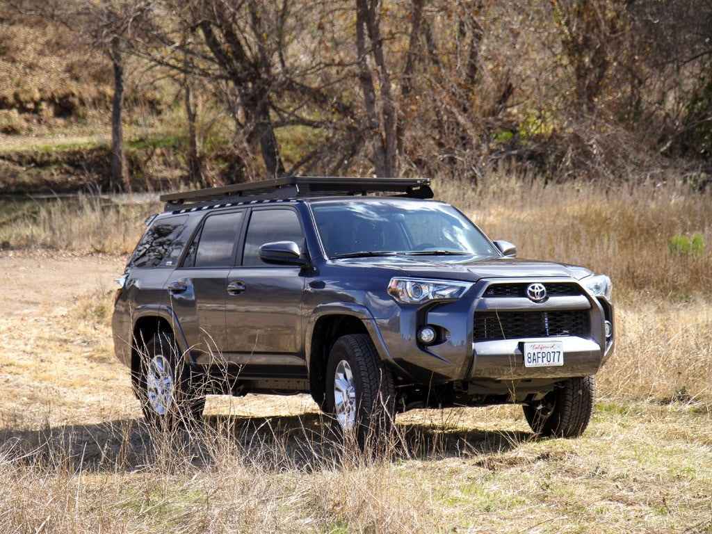 This 2166mm/85.3” long full-size Slimline II cargo roof rack kit contains the Slimline II Tray, Wind Deflector and a set of Foot Rails to mount the Slimline II Tray to the 5th Gen 4Runner. It easily installed using the 8 existing factory mounting points. Drilling is required to secure the front Foot Rails.