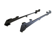This 1358mm/53.5" long full-size Slimline II cargo roof rack kit contains the Slimline II Tray, Wind Deflector and 2 Foot Rails to mount the Slimline II Tray to your 2005+ Tacoma Double Cab. It easily installs using the existing factory mounting points. No drilling required. Compatible with "shark fin" antenna.