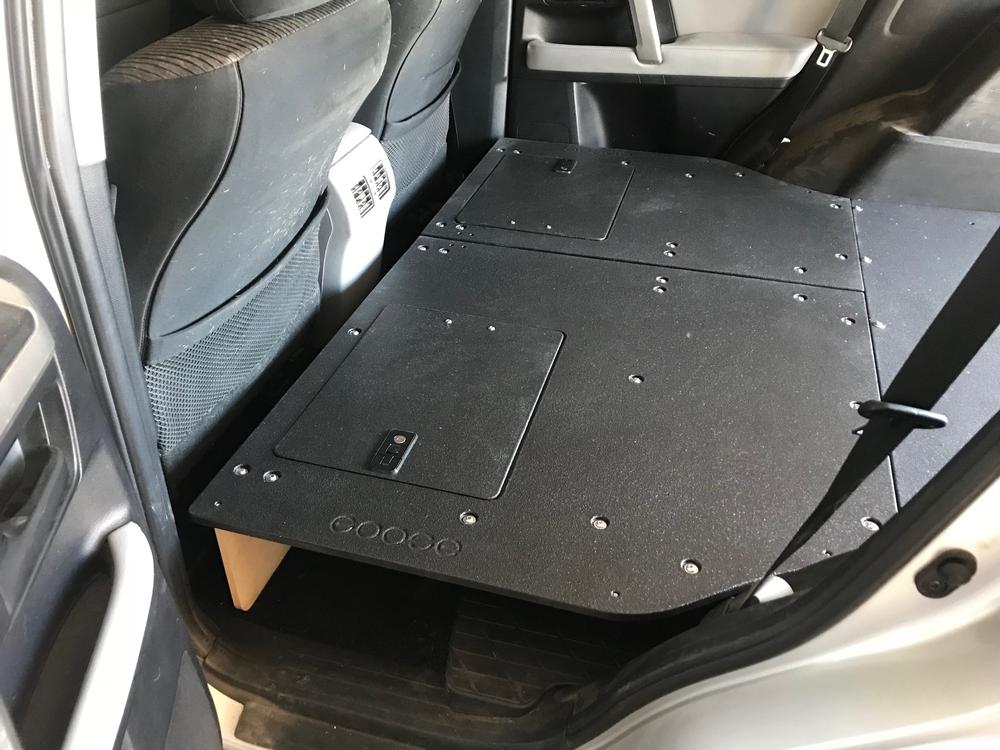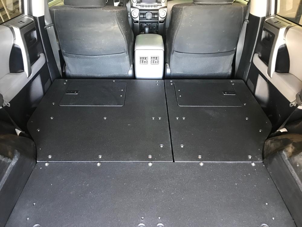 40% AND 60% Sleeping Platforms are designed for 2010-Current Toyota 4Runner WITH THE 3rd Row Seat Delete Plate and are designed to remain flat and even with the rear plate. As shown in the pictures.