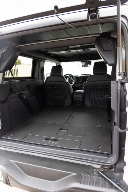 The Goose Gear® Stealth Sleep Package for the Ford Bronco 2 Door, you get the rear Plate System™ as well as the complete second row delete Plate System™. Turning the back of your 2 Door Bronco into a flat and open storage and sleep solution. Designed and built with a Baltic Birch plywood coated with a proprietary LineX material.