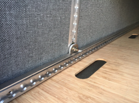 - Each panel is expanded in place by a gas strut that exerts 15lbs of pressure onto the track system for a tight fit