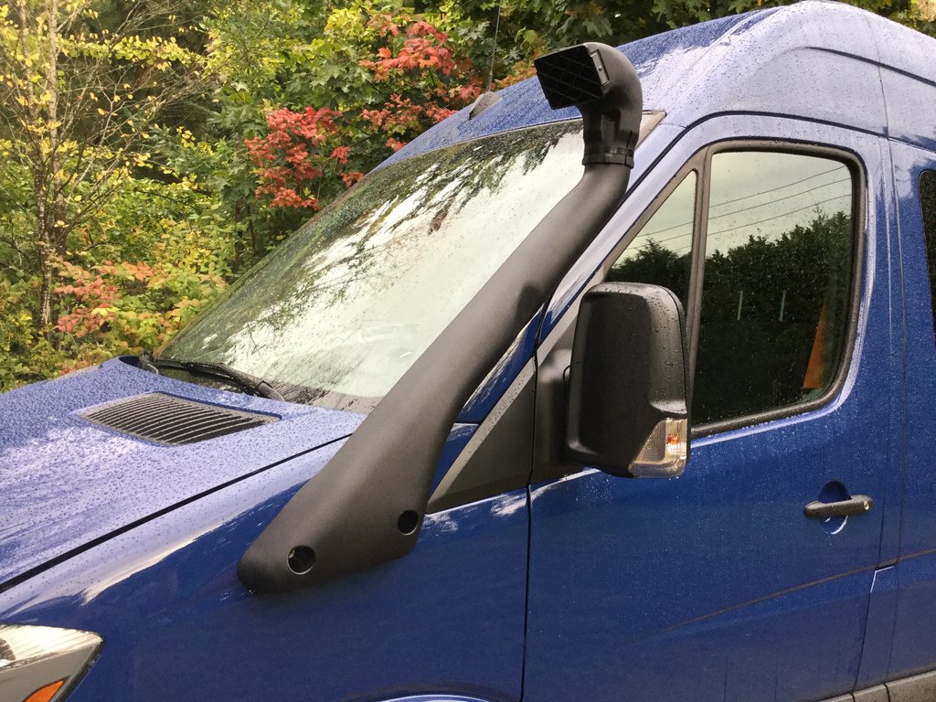 Our snorkel kit comes with all the hardware you'll need for a clean installation. Fits 2010 and up Sprinters. We recommend turning the intake facing rearwards in heavy snow conditions.