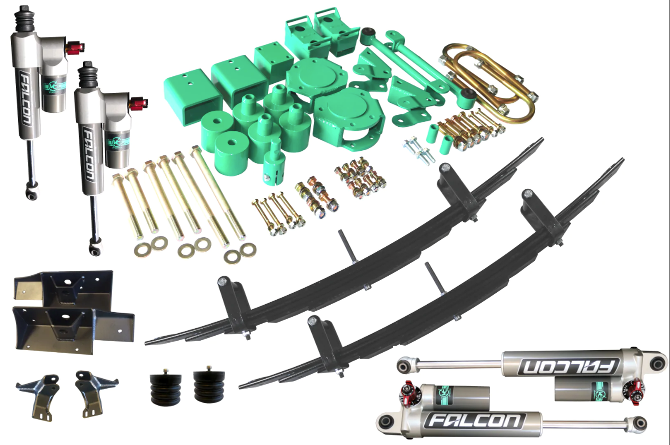 The cornerstone of this handling upgrade kit is the 4-corner, adjustable Falcon 3.3 Fast Adjust Shocks with their huge range of compression adjustment available at the simple flip of a large, easily accessed Fast Adjust knob. This allows you to quickly adjust from the softest to firmest settings over a significantly larger range than the competition's smaller adjusters. A larger range of adjustment means the shocks are more effective and adaptable to multiple modes of use.
